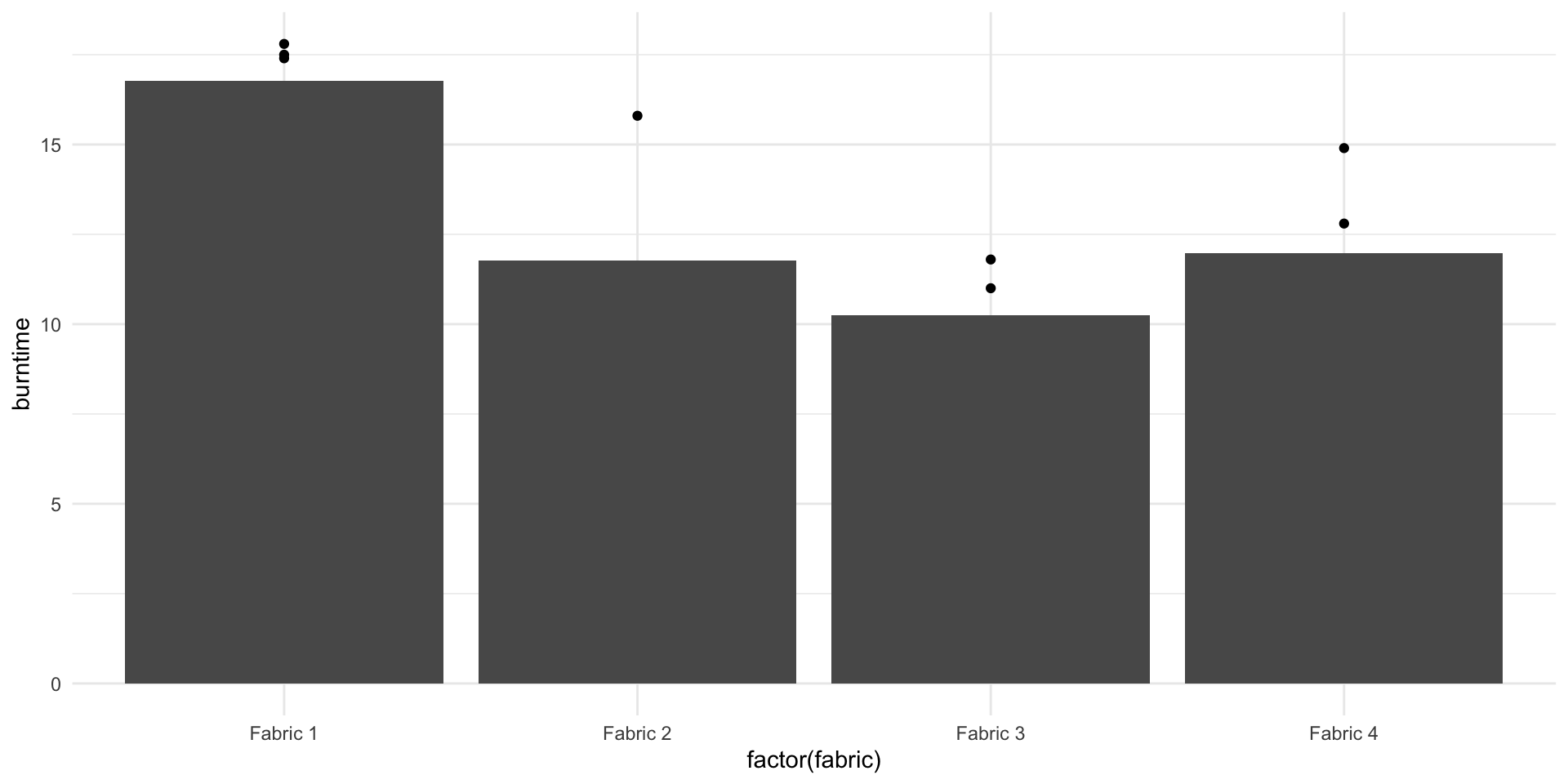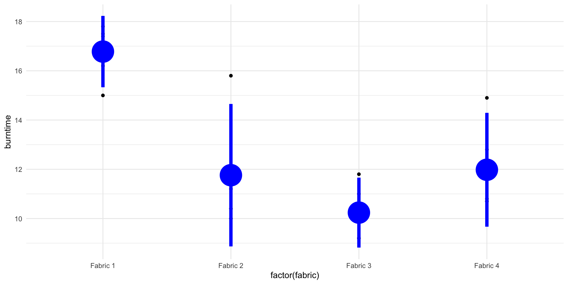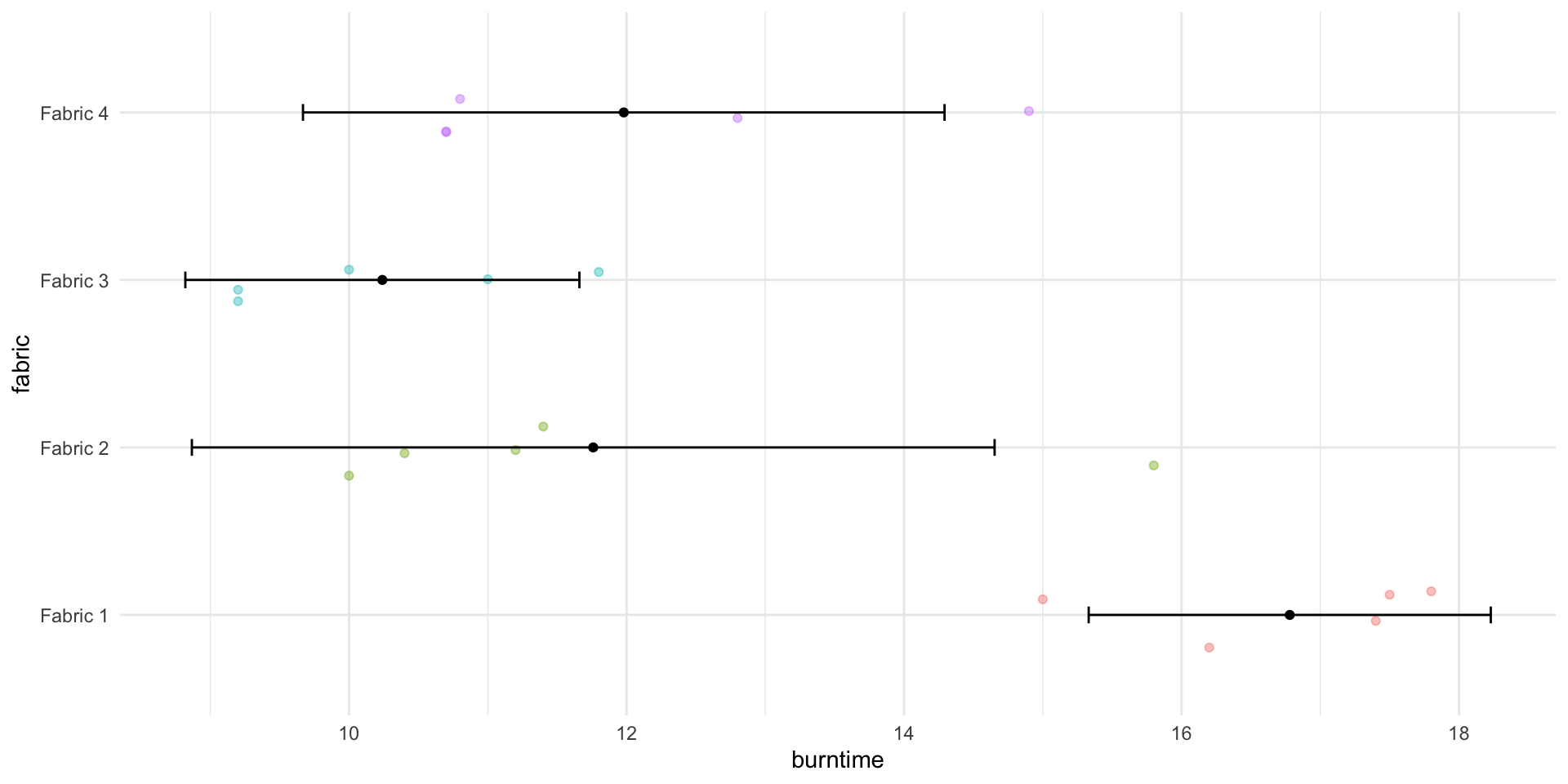 In other words, the null hypothesis of equal mean burntime is rejected.