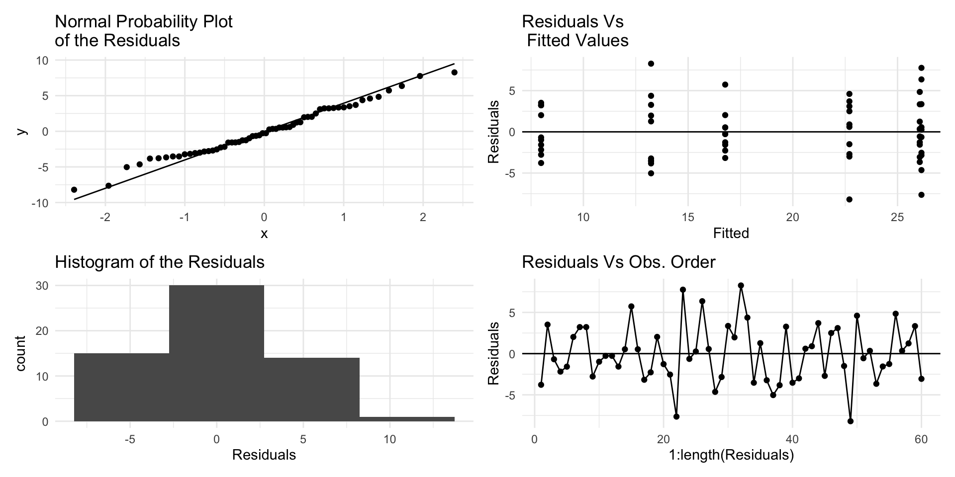 - Assumptions: normality, equal variance, and independence of residuals